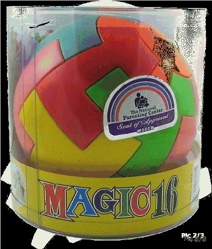 Winner of the National Parenting Center Seal of Approval, this challenging puzzle keeps your brain on its toes, plus is perfectly sized for keeping kids busy in the back seat of the car. The 16 plastic pieces magnetically attach to the ball core, with four possible solutions to extend the challenge. 4 1/2" diameter.